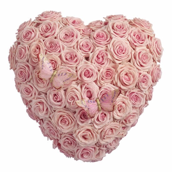 Rouwhart roze rozen. Specifieke rouwarrangementen voor een uitvaart van een kind of kleine baby worden ook door UVBN gemaakt.
